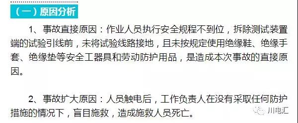 (二)暴露的主要問題輸入標題 3、作業人員嚴重違章:《安規》、《交流輸電線路工頻電氣參數測量導則》明文規定:“高壓試驗人員在測量接線及變更接線時,必須在被測線路兩端均接地,防止感應電壓觸電。”規程規定寫的清清楚楚,而作業人員未嚴格執行,是一起典型的嚴重違章。
